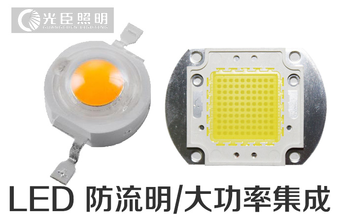 三、大功率LED封裝(仿流明/集成):大功率LED是指擁有大額定工作電源的LED,功率可以達到單顆1W、2W,甚至數(shù)十瓦,工作電流可以是幾百毫安到幾安不等。主要常見的有仿流明、大功率集成光源。