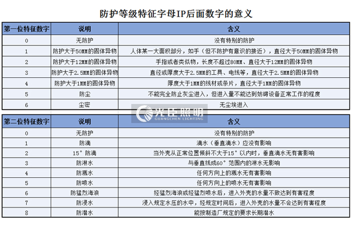 LED亮化燈具廠家光臣智科通過為大家整理的以上這兩張數(shù)據(jù)圖,可以讓對防護等級特特字IP后面的數(shù)字含義作一次簡單的解釋和分享,如果通過此篇文章還能解答您心中的疑問,可以通過以下聯(lián)系方式進行電話咨詢。