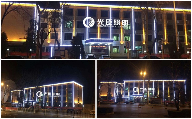 本次亮化主要是以LED白光線條燈做建筑輪廓亮化,柱子用金黃光窄光投射燈,客戶對整體效果和亮度都很滿意。