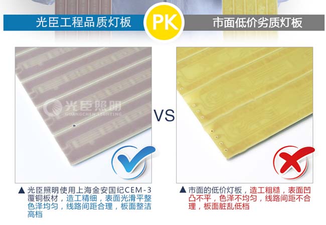 針對(duì)PCB板材的材質(zhì)來分析,PCB板也有分很多種質(zhì)量層次,市面上大部份廉價(jià)的線條燈選用的是二次料的PCB板材,這種板材在受熱后容易分層、銅箔太薄容易掉、粘合性不好銅箔層和PCB板層容易分開,更不用說線路穩(wěn)定性如何,板材都這樣還指望線路是穩(wěn)定的嗎?別開玩笑了,大家都很忙!大多數(shù)便宜的線條燈它沒有經(jīng)過合理的線路布局和檢驗(yàn)測(cè)試去測(cè)評(píng)它的可靠性和穩(wěn)定性。而正規(guī)的LED線條燈廠家所生產(chǎn)出來的產(chǎn)品肯定會(huì)做到這一點(diǎn)才能在市面上銷售。