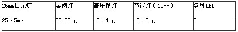 以前,我們會(huì)談汞色變,比較典型的案例就是日本的水俁病事件了,而后日本在汞處理方面力度很大。我們比較熟悉的含汞產(chǎn)品估計(jì)就是電池了,不過(guò)現(xiàn)在也改良成了無(wú)汞電池。但是我們的日光燈和一些電子產(chǎn)品,都有汞存在,而我們卻有很多人不懂處理,包括環(huán)保部門(mén)對(duì)這方面也不怎么重視,一般都是隨意填埋,導(dǎo)致汞滲透到地下水和土壤當(dāng)中,污染嚴(yán)重。LED的出現(xiàn)和流行是有一定的原因的,不單單是節(jié)能,還有的一個(gè)重要點(diǎn)是無(wú)汞環(huán)保。這是日本大力推行LED燈具的重要原因。以下是各燈具含汞量: