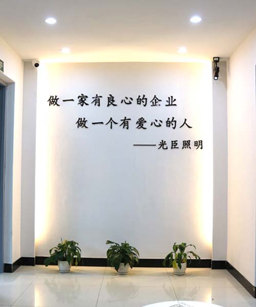 當(dāng)您還沒有走進(jìn)光臣大門時(shí),電梯門一開,映入眼簾的是墻上白底黑字清清楚楚的兩句話:“做一家有良心的企業(yè)、做一個(gè)有愛心的人”,不管是每天上班的員工還是來訪的朋友都對(duì)這句話特別有印象(PS:老板也許是個(gè)心機(jī)BOY,讓員工每天都能帶正能量上班兒)好事!